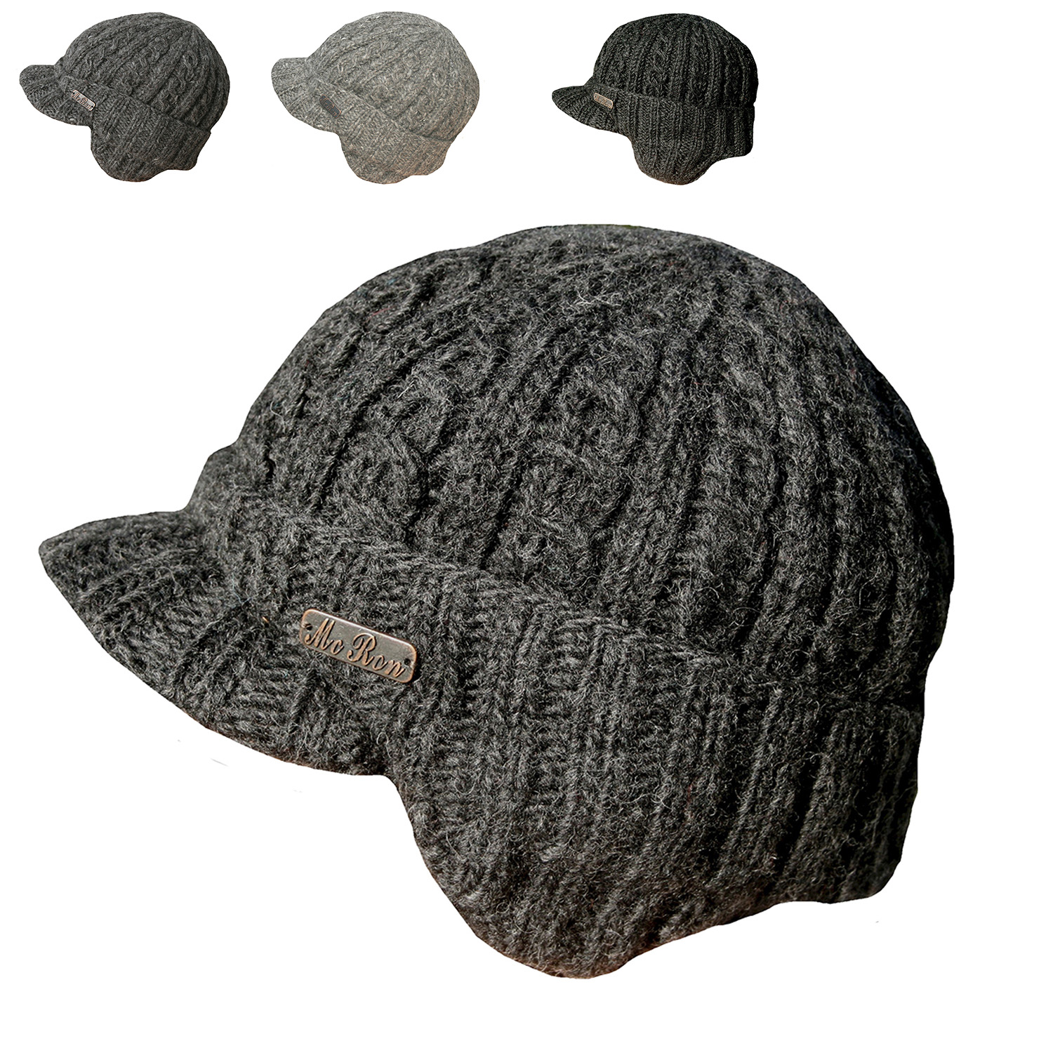 handgestrickte Schirmwollmütze mit komplettem Fleecefutter in 4 unterschiedlichen Farben